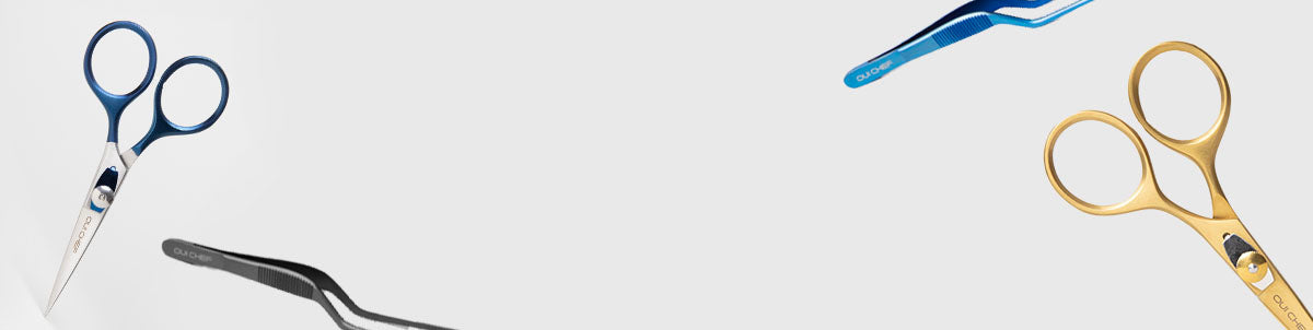 Shape guide image showing different Oui Chef tweezers in blue metallic Shape guide image showing different Oui Chef tweezers in blue metallic